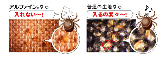繊維と繊維の隙間が小さく、ダニを強力にシャットアウトします!